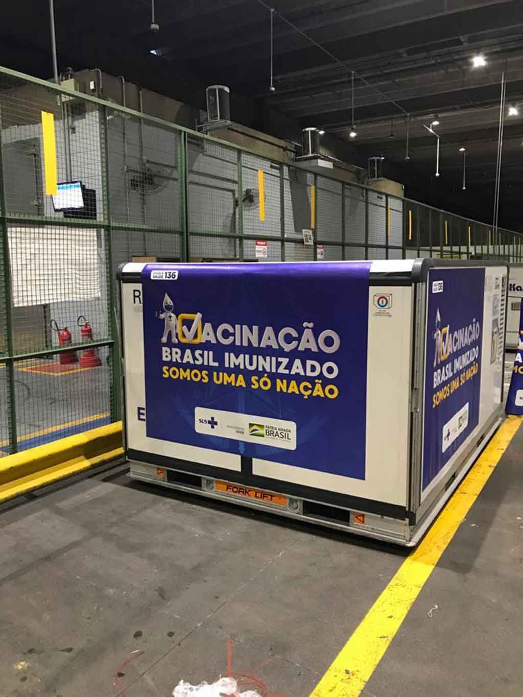 Dois milhões de doses da vacina contra a covid-19 da Oxford/AstraZeneca chegaram ao Aeroporto Internacional de Guarulhos, na Grande São Paulo, às 17h24 desta sexta-feira (20).