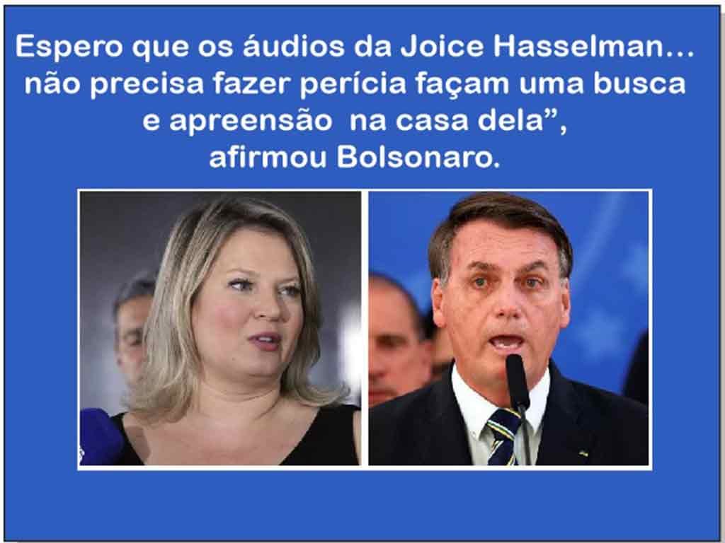“Espero que o STF… a maioria dos ministros corrija ou resolvam o que está acontecendo. Já estava errado fazer busca e apreensão na casa de qualquer um, mas é pior ainda de quem me segue, de quem me apoia. O outro lado, esquece. Espero que os áudios da Joice Hasselman… não precisa fazer perícia… façam uma busca e apreensão na casa dela”, afirmou Bolsonaro.