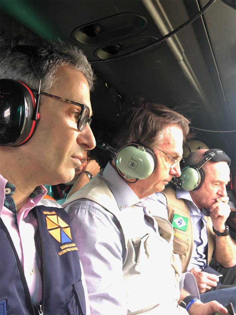 Presidente Jair Bolsonaro sobrevoa a região de Brumadinho, atingida pelo rompimento da barragem da Vale Isac Nóbrega/PR[/caption]