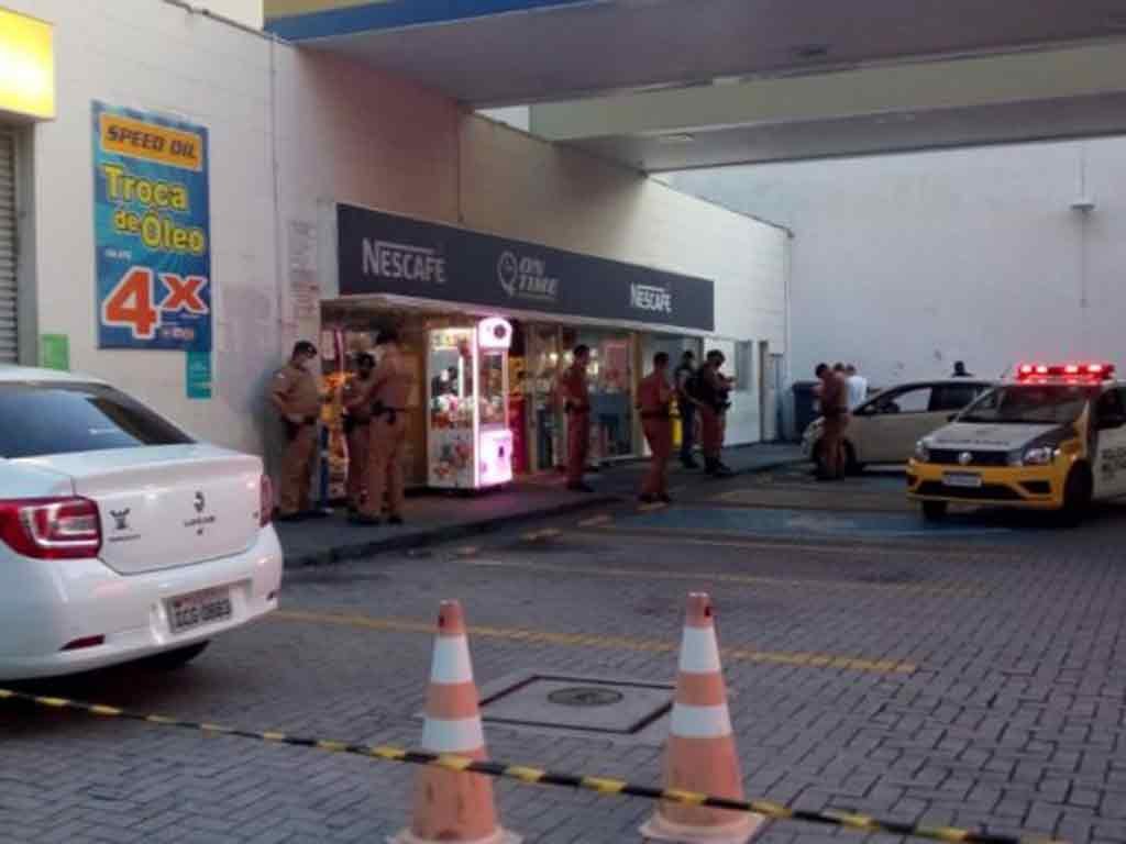 As vítimas estavam na conveniência de um posto de combustíveis localizado na Rua Brigadeiro Franco esquina com Rua Vicente Machado. Curitiba (Foto: Cristiano Vaz/Programa 190)[/caption]