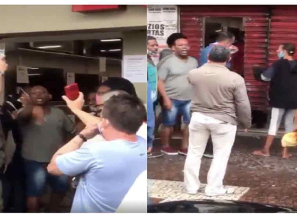 – Eu estou passando fome, minha loja fechada e as Lojas Americanas abertas! Ninguém está respeitando as pessoas. Aqui [na Americanas] tem aglomeração, tem que ser porta fechada também! Se é para f* com um, tem que f* todo mundo! – afirmou.
