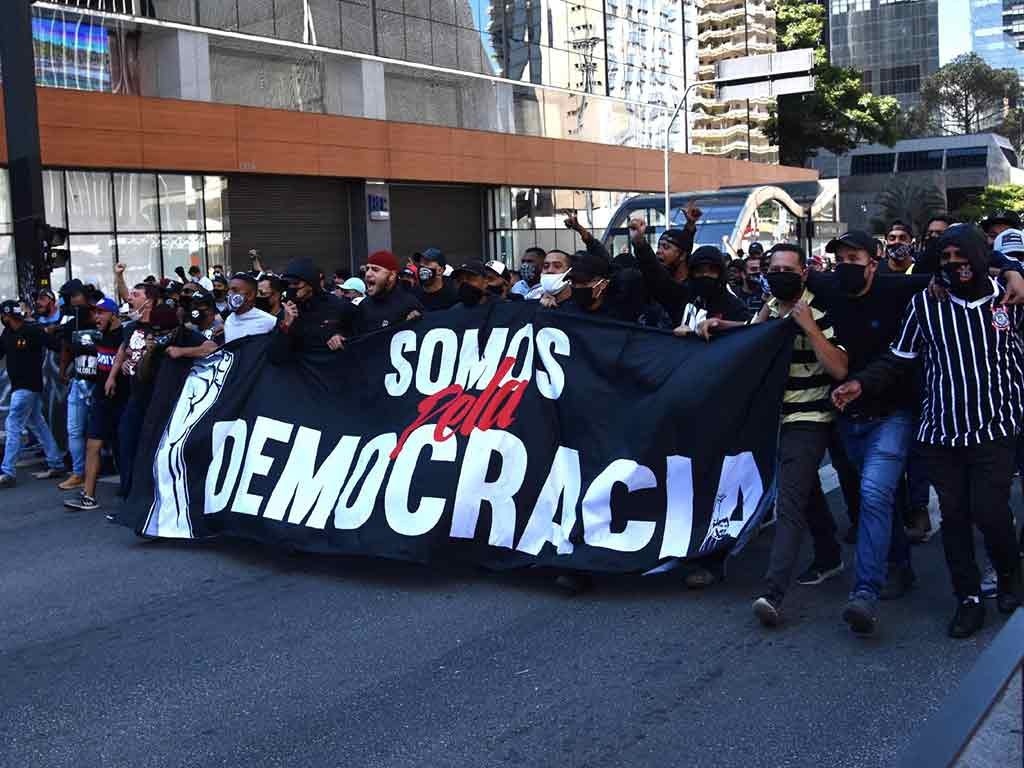 A avenida Paulista transformou-se em palco de um confronto entre a Polícia Militar e participantes de um ato organizado por torcidas organizadas de futebol, entre elas a do Corinthians e do Palmeiras, que criticavam o presidente Jair Bolsonaro (sem partido) e pediam a defesa da democracia.