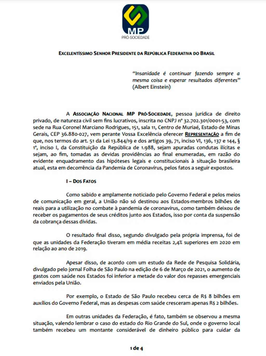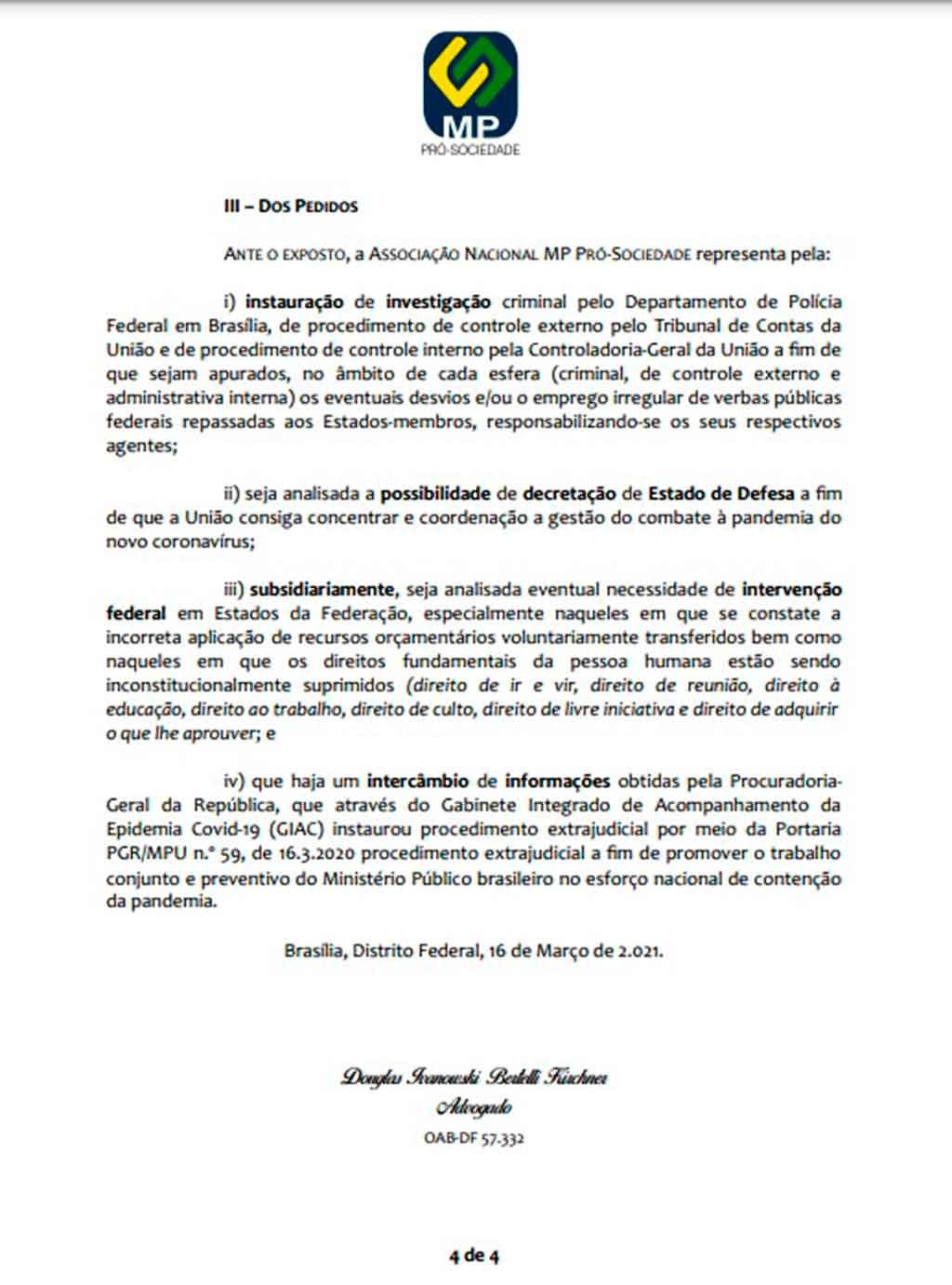 ANTE O EXPOSTO, a ASSOCIAÇÃO NACIONAL MP PRÓ SOCIEDADE representa pela: