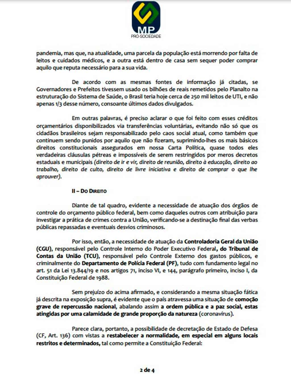 Presidência da República, um pedido para que o Presidente Jair Bolsonaro decrete “ESTADO DE