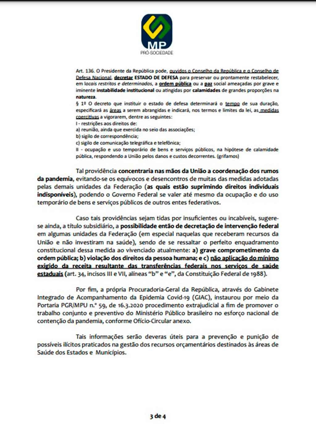 O MPPS acaba de pedir ESTADO DE DEFESA junto aos estados e municípios para manter a ordem