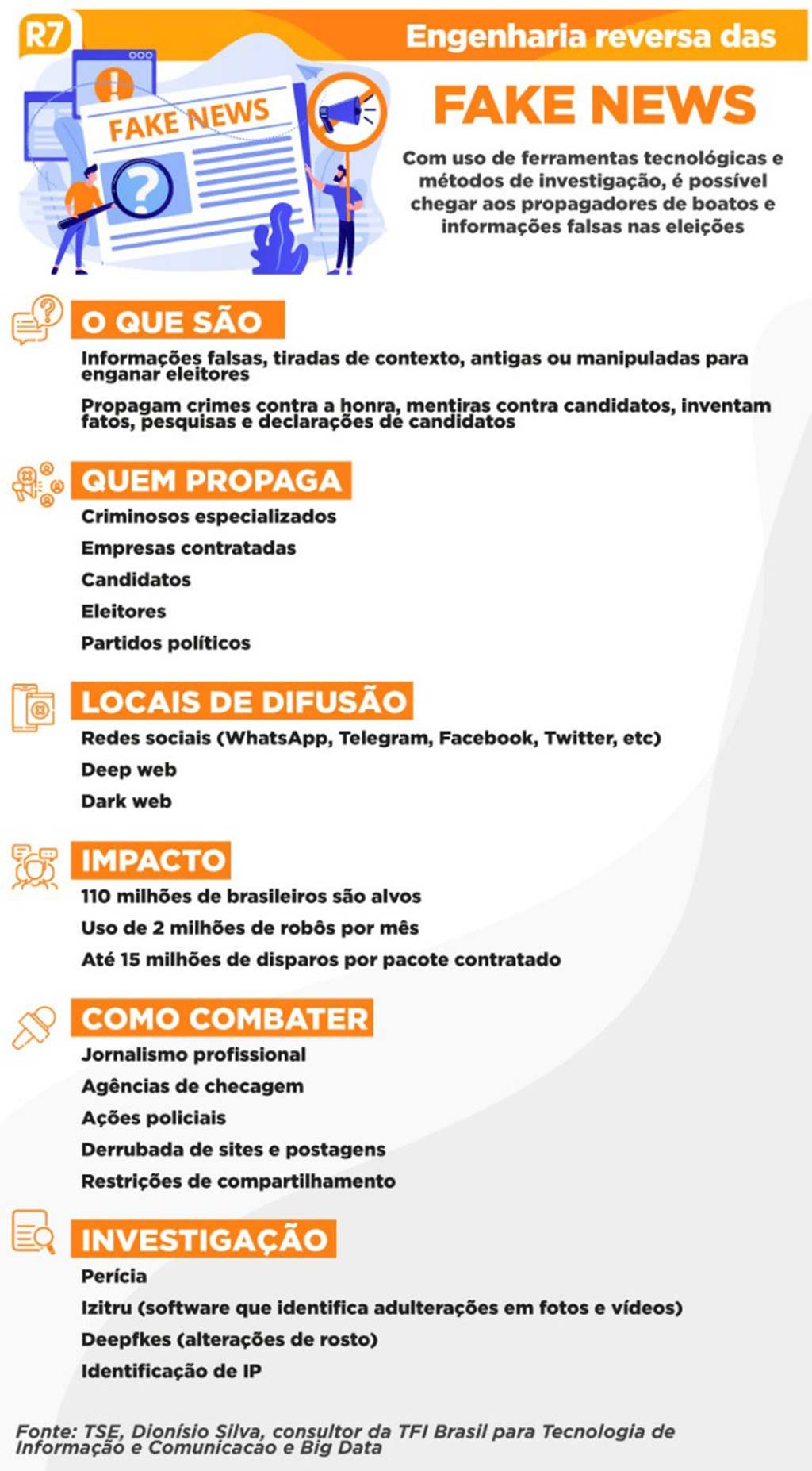 As chamadas fake news, que dominaram as redes na eleição de 2018, entram na mira da mais alta corte da Justiça Eleitoral. No entanto, as dificuldades ainda são colossais e o tribunal se prepara para enfrentar o desafio que é garantir a lisura das eleições. Especialistas ouvidos pelo R7 apontam a necessidade de investir em tecnologia para identificar infratores e destacam que ninguém está livre de ser encontrado pelas autoridades.