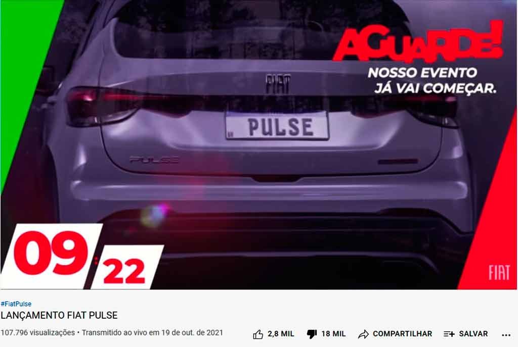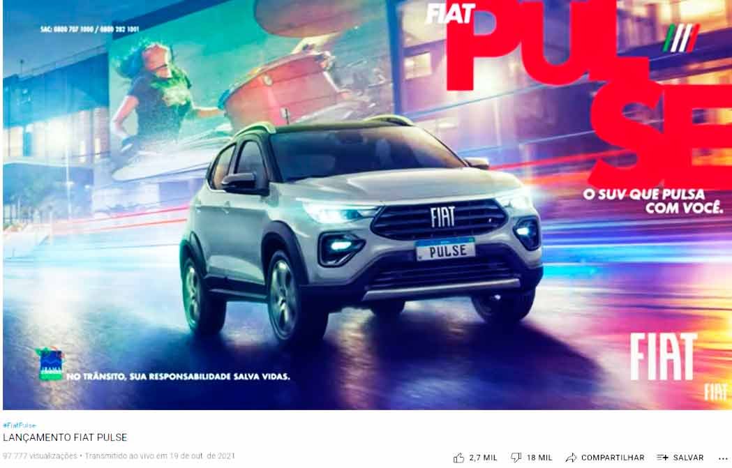 Lançamento do Fiat Pulse teve 18 mil deslikes Foto: Reprodução/Youtube Fiat[/caption]