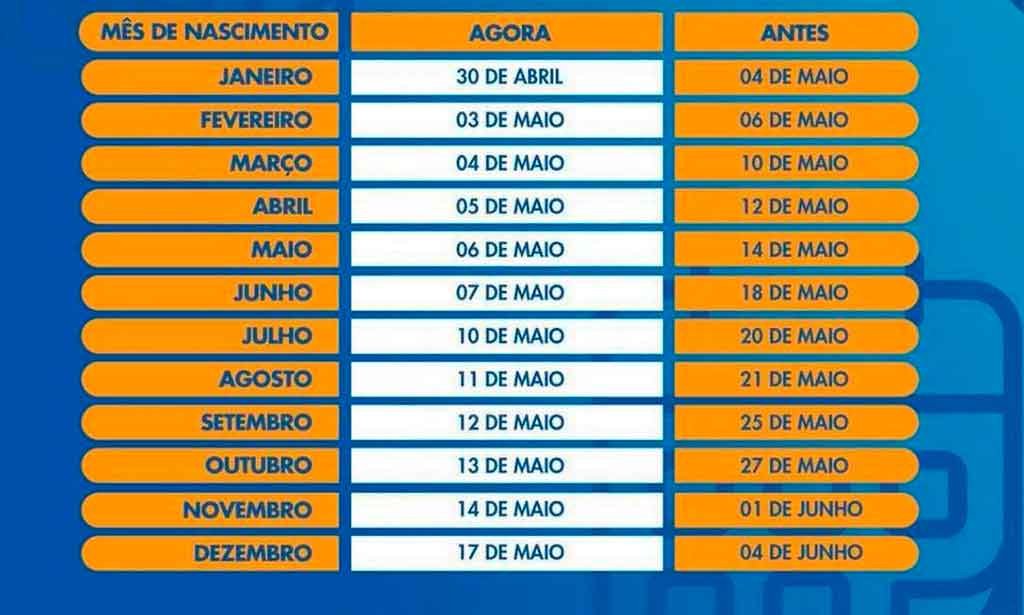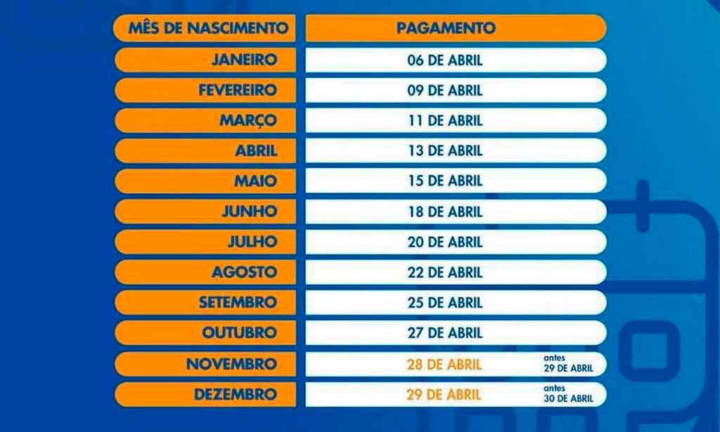 antecipação do calendário de crédito em conta. Os beneficiários nascidos em