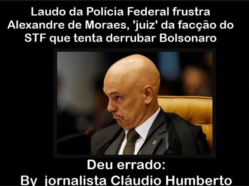 Informação quentíssima do bem informado jornalista Cláudio Humberto, dá conta de que no ‘apenso 70’ do malfadado inquérito das Fake News, um laudo pericial emitido pelo Polícia Federal, frustrou o ministro Alexandre de Moraes.