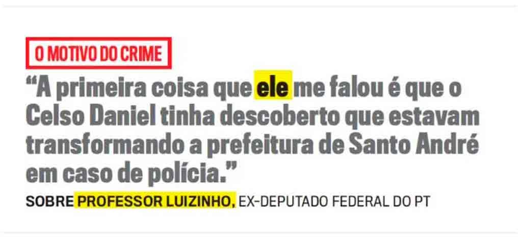 Mais: disse ter ouvido desse empresário que o ex-presidente foi o mandante do assassinato. Até hoje, a morte do prefeito é vista como um crime comum, sem motivação política, conforme conclusão da Polícia Civil.