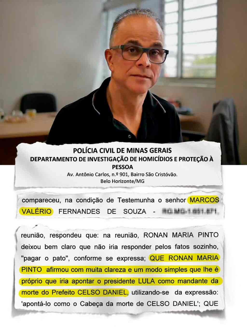 Valério contou ao promotor que Ronan Maria Pinto, quando exigiu dinheiro para ficar calado, declarou que não ia “pagar o pato” sozinho e que iria citar o presidente Lula como “mandante da morte” do prefeito de Santo André.