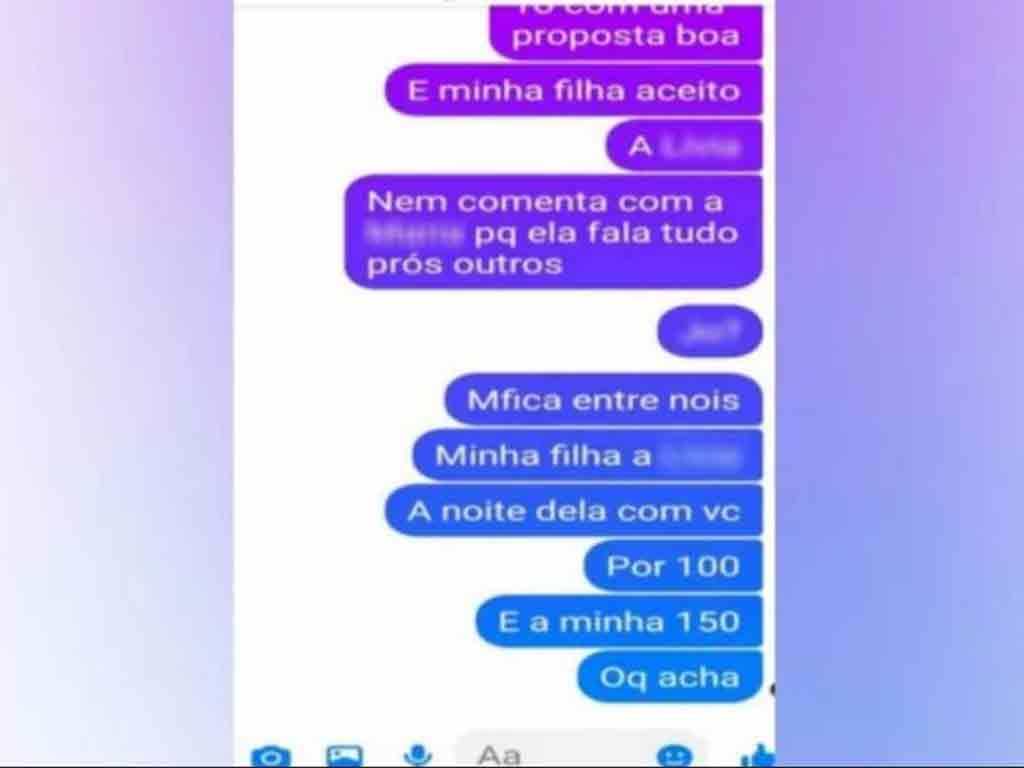 A Polícia Civil afirmou ao G1 que recebeu uma denúncia de que mãe negociava por mensagens programas da filha com homens. Uma das conversas mostra que a mulher chegou a oferecer que a adolescente fosse prostituída por R$ 100.