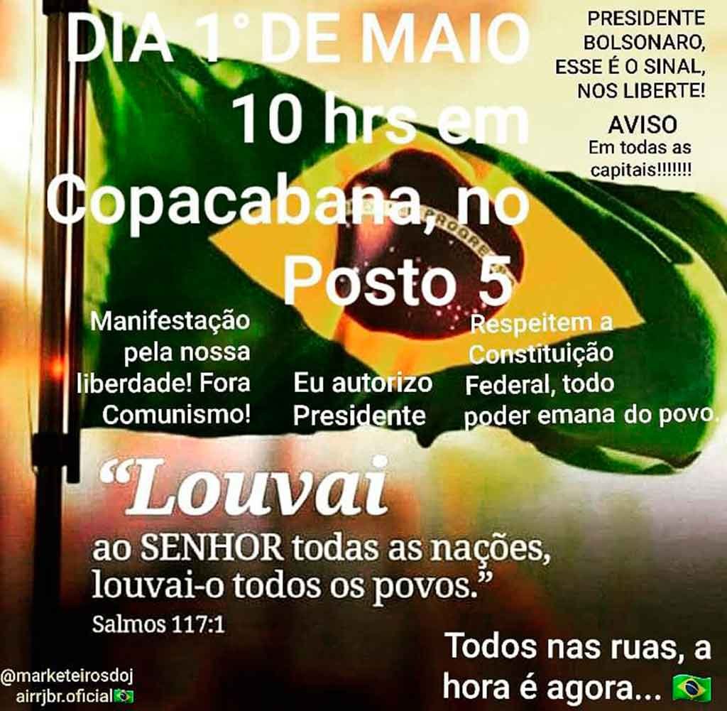 PORTANTO NÃO FIQUE EM CASA NESTE 1 DE MAIO: Procure as lideranças de suas cidade e é a hora de mostrar ao Brasil a força de seu povo e é chegada a hora de autorizar ao Presidente da República a agir pelo seu povo[/caption]