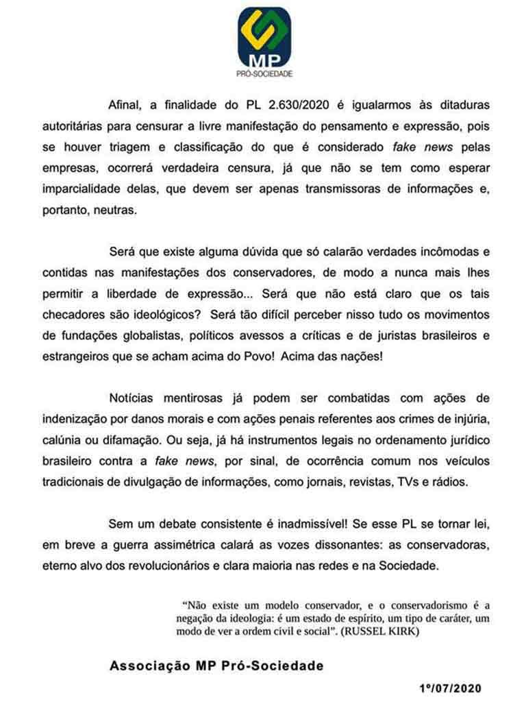 Sem um debate consistente é inadmissível! Se esse PL se tornar lei, em breve a guerra assimétrica calará as vozes dissonantes: as conservadoras, eterno alvo dos revolucionários e clara maioria nas redes e na Sociedade.