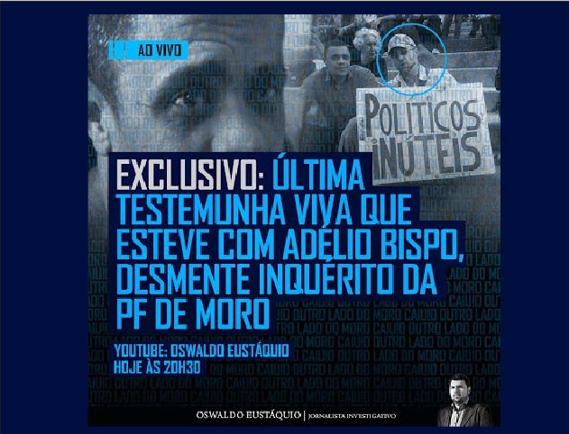 Na noite deste domingo(26), Oswaldo Eustáquio entrevistará a última testemunha viva que esteve com Adélio Bispo.