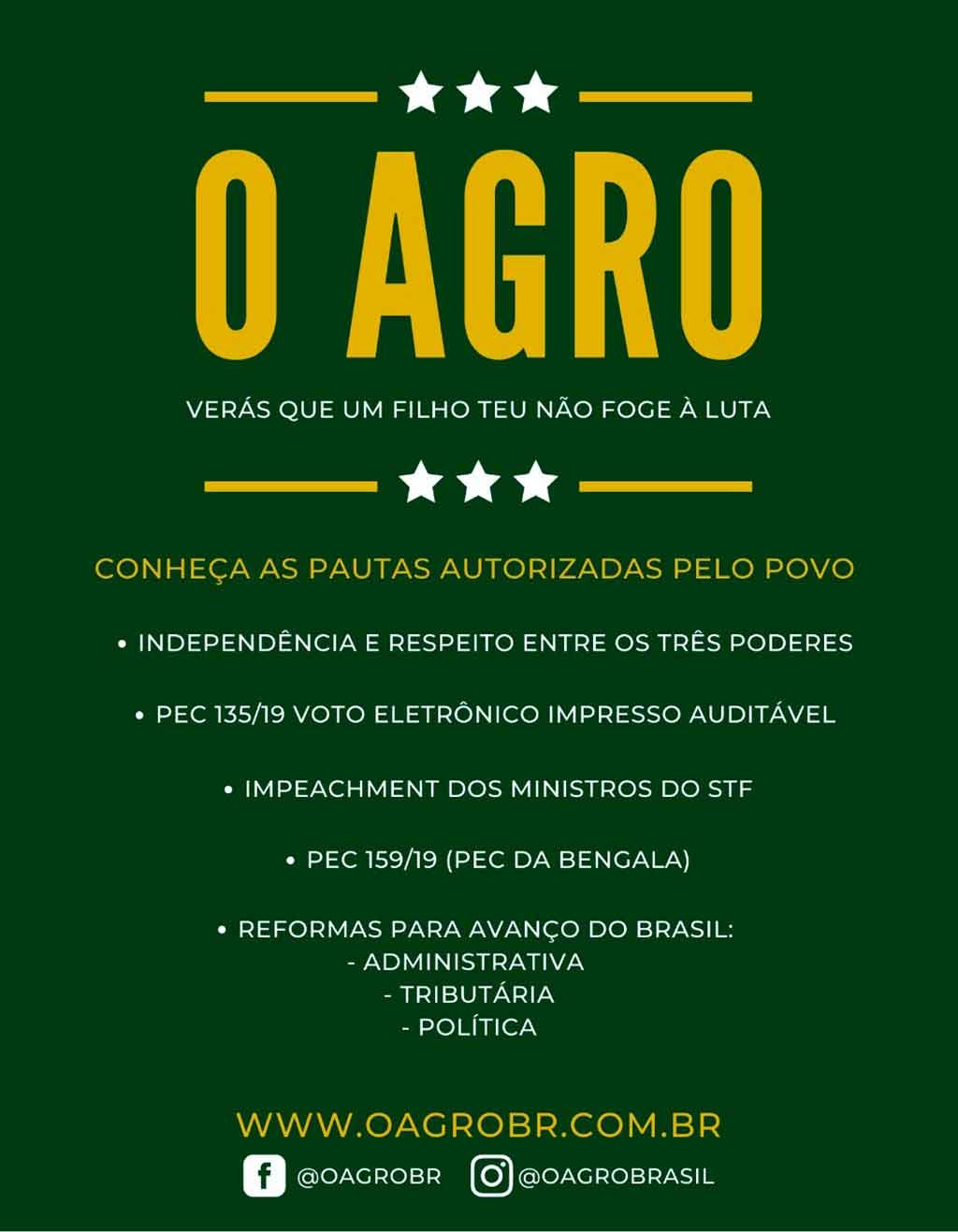 “É um movimento que nasceu no agro, mas que visa lutar pelos anseios de toda a sociedade brasileira, sem distinção”, afirmou.