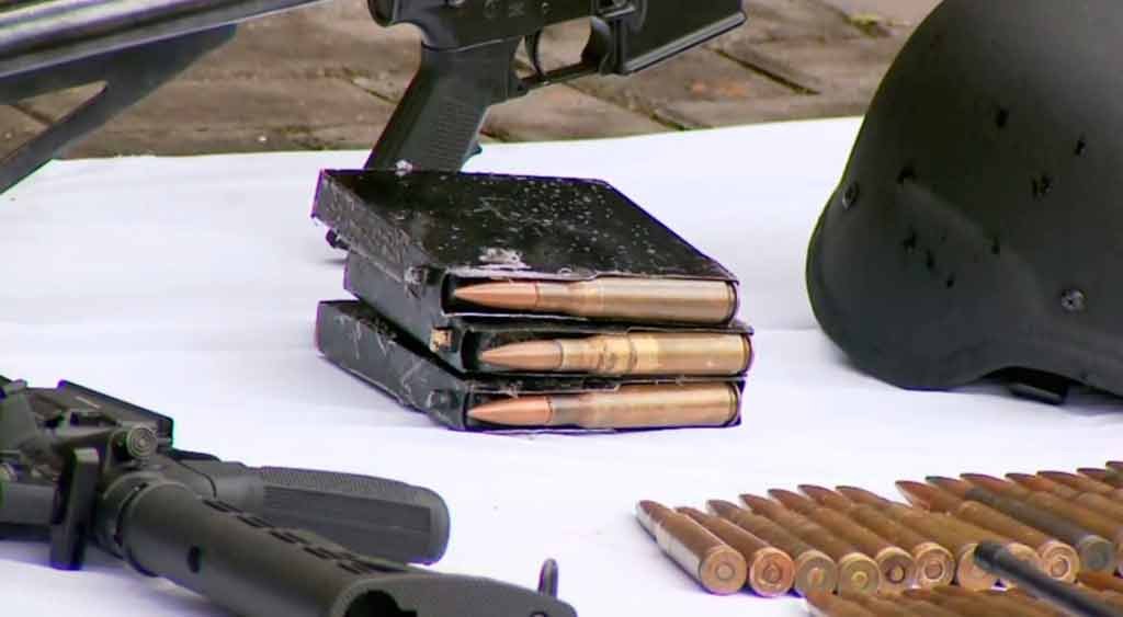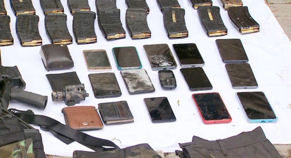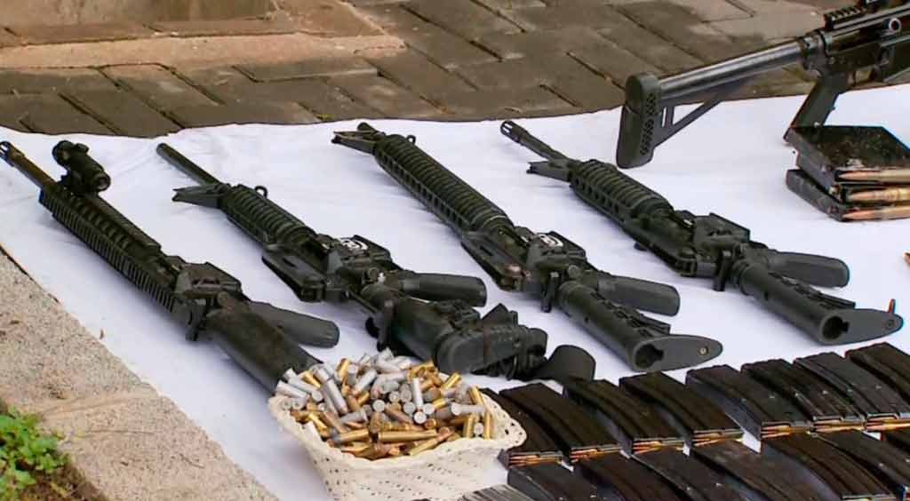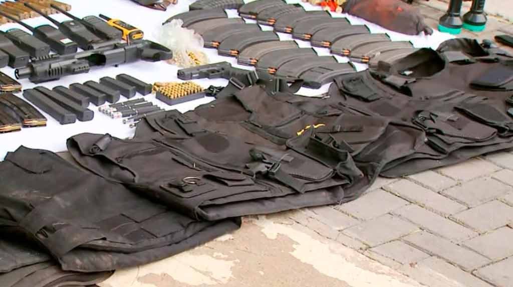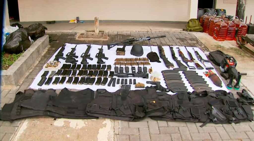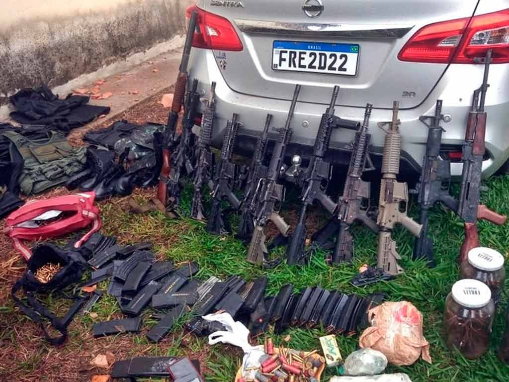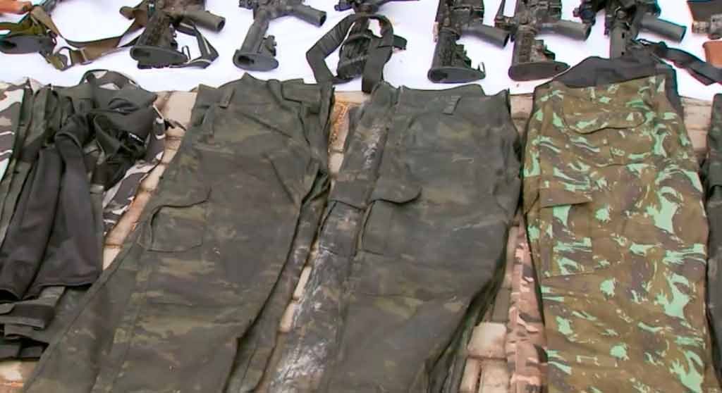 Conforme a Polícia Militar, os suspeitos tinham uniformes, coletes balísticos, coturnos e roupas camufladas. Além disso, tinham carregadores já municiados e armamentos de todos os calibres, como fuzis, escopetas e também “miguelitos”, usados para furar pneus de viaturas.