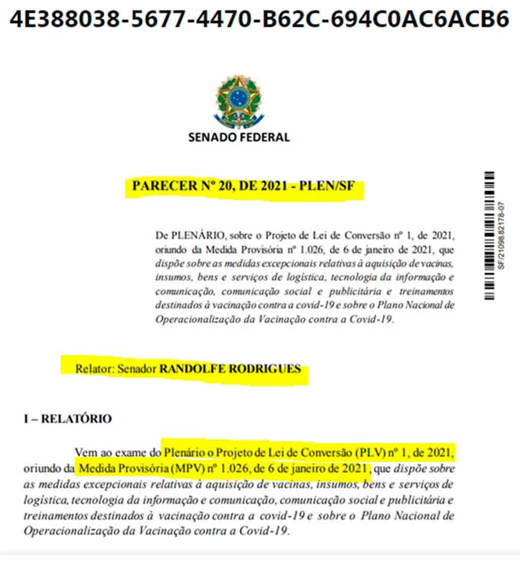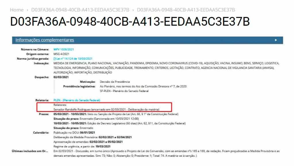 COVAXIM, o Senador Randolfe foi relator de uma MP e votou favorável