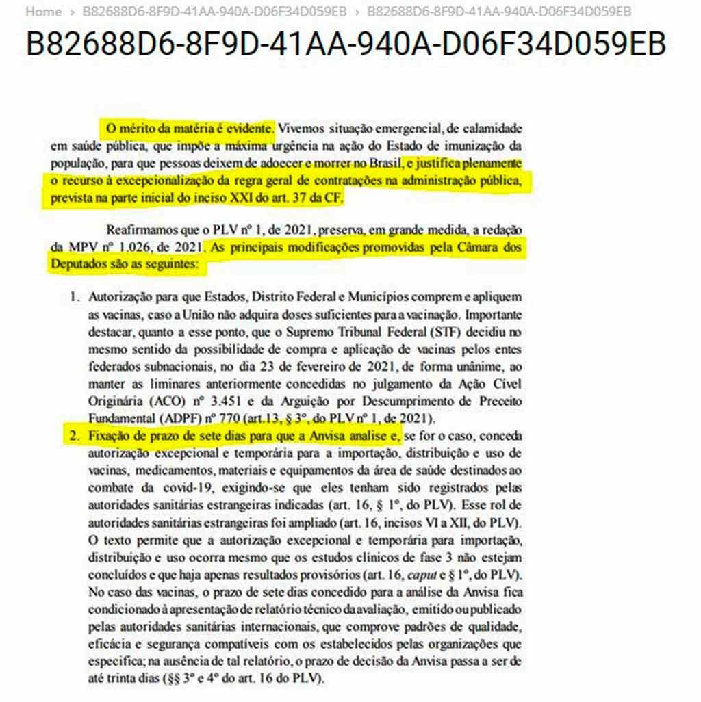 dizendo que era urgente dando 7 dias para a ANVISA aprovar, o