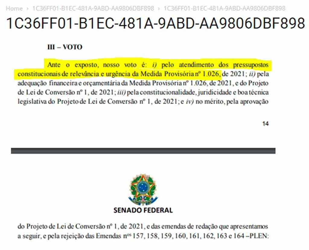 Bolsonaro se referia as emendas a MP (medida provisória) 1026/2021,