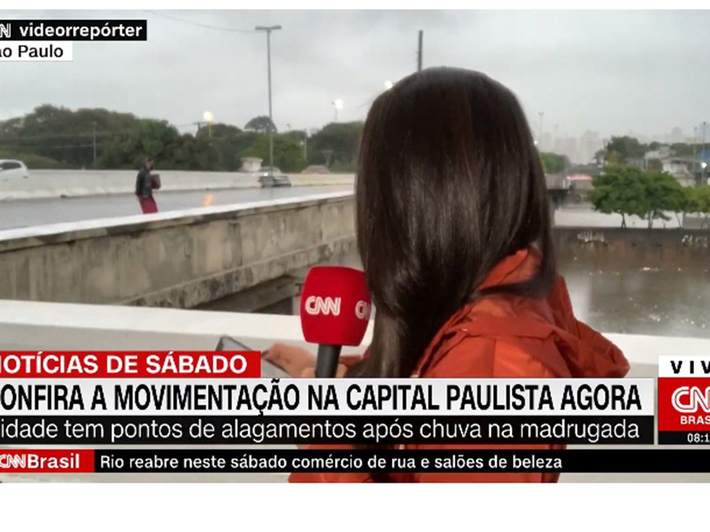 Jornalista teve dois celulares roubados enquanto fazia a cobertura da chuva na cidade de São Paulo. Bandido ainda a ofendeu quando ela reportou o assalto CNNBrasil[/caption]