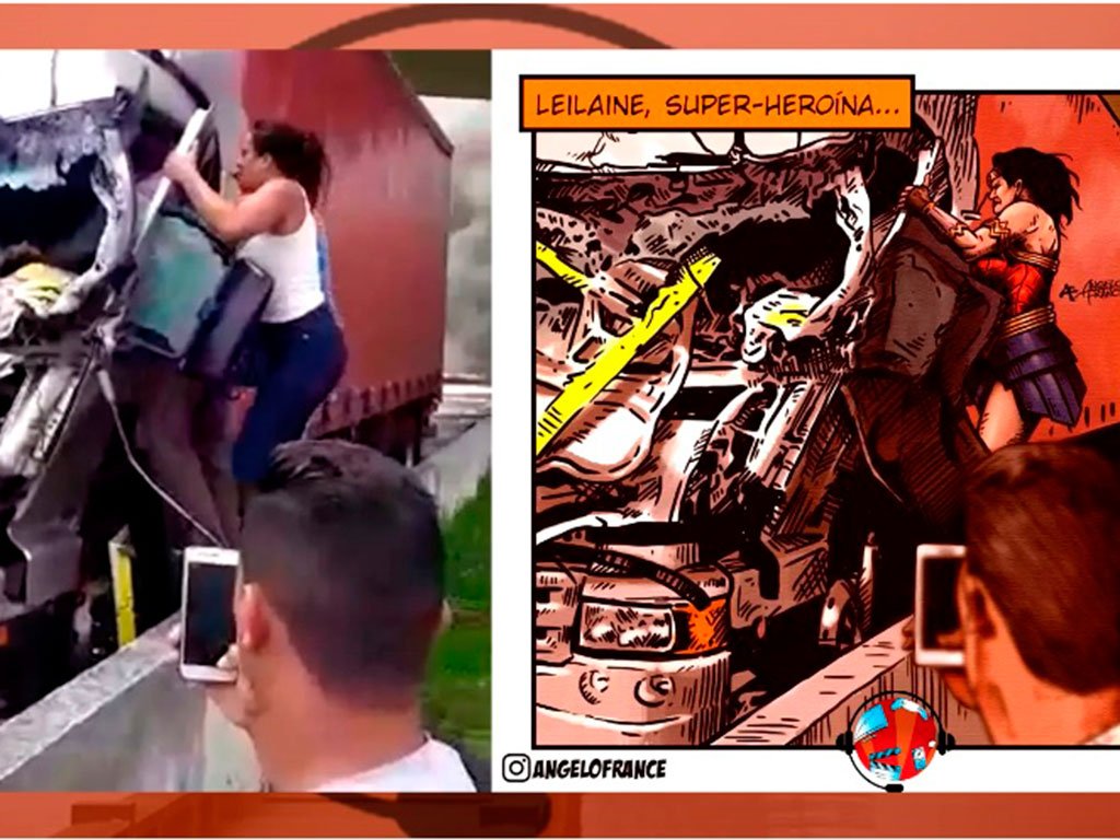 Ao ser perguntada sobre os memes recentes em que ela vira uma super-heroína salvando vidas – ela ajudou no resgate do motorista cujo caminhão se chocou com o helicóptero que transportava Boechat – , Leiliane fica sem graça e diz que não se sente uma mulher-maravilha.