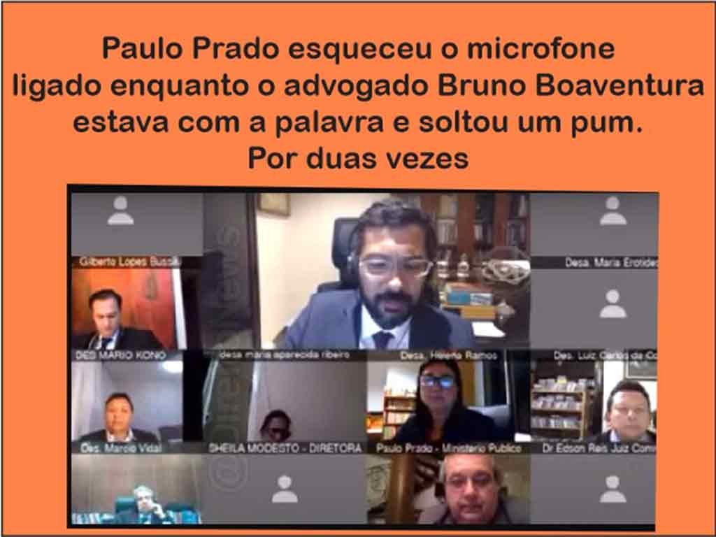Por um descuido, o procurador Paulo Prado esqueceu o microfone ligado enquanto o advogado Bruno Boaventura estava com a palavra e soltou um pum. Por duas vezes. (Vídeo no final da matéria).