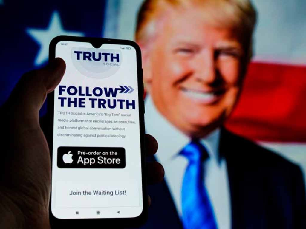 O novo empreendimento de mídia social de Donald Trump, o Truth Social, deve ser lançado na segunda-feira na App Store da Apple,[/caption]