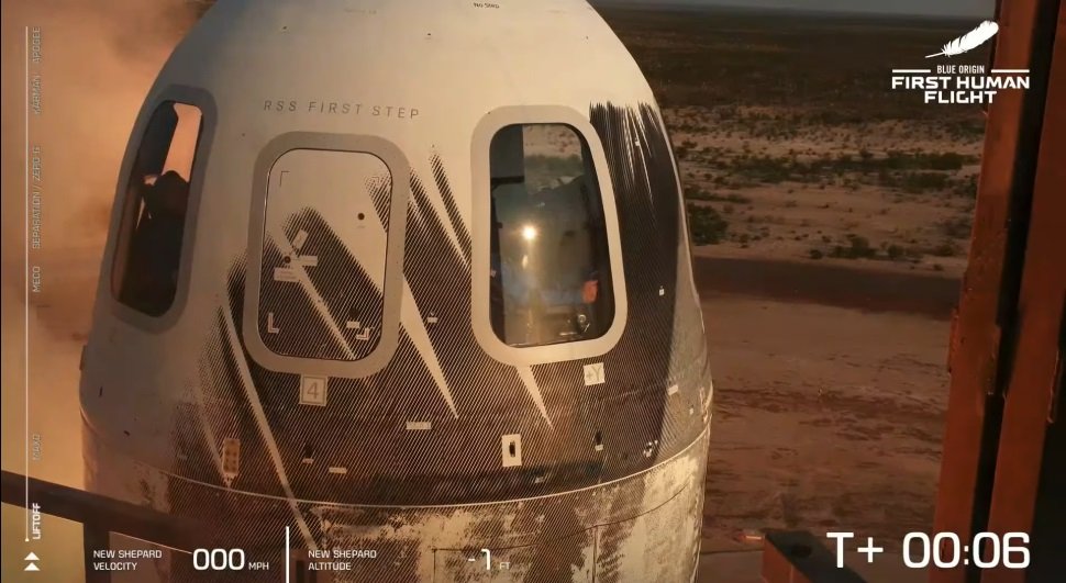 A tripulação do primeiro voo tripulado da Blue Origin, empresa de exploração espacial de Jeff Bezos, fundador da Amazon, embarcou no foguete New Shepard, testou os comandos de comunicação com a base na Terra e cápsula foi fechada.