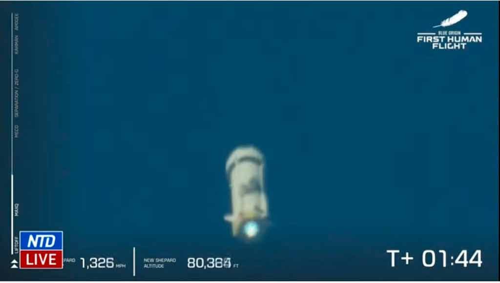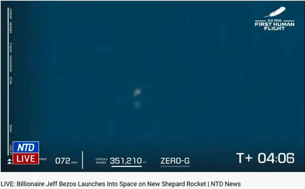 Já no espaço...Momentos pós a partida. (crédito:NTV Live - BlueOrigin/Divulgação )[/caption]
