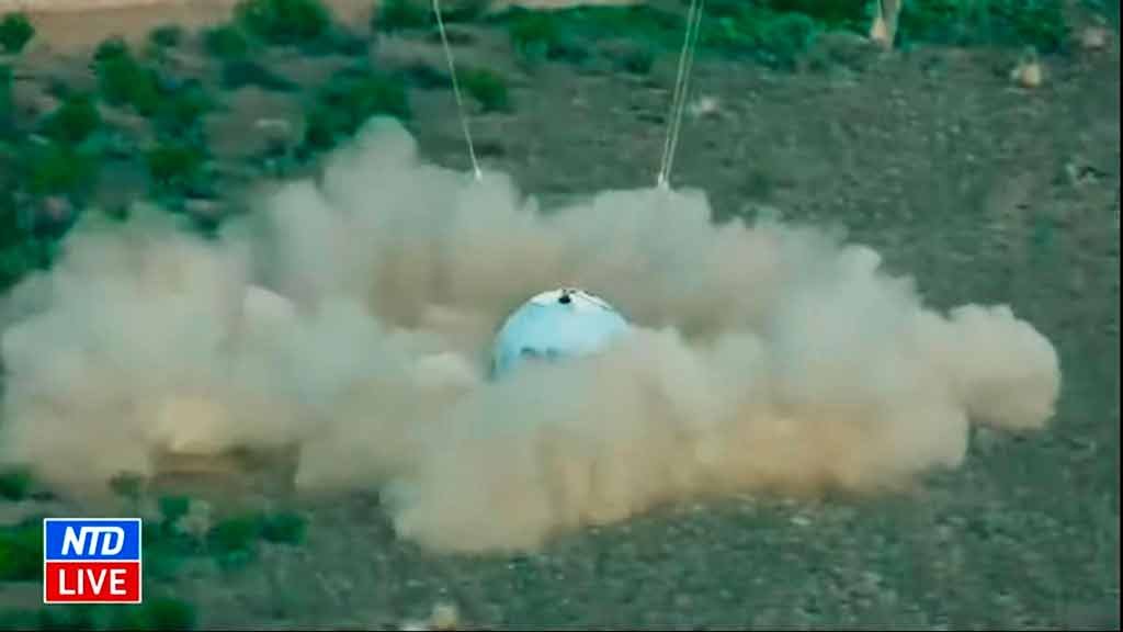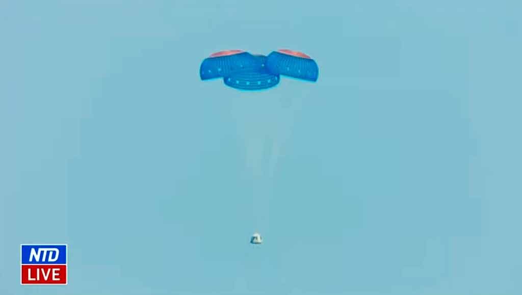 A viagem foi realizada com sucesso: a nave tocou o solo terráqueo às 10h22.