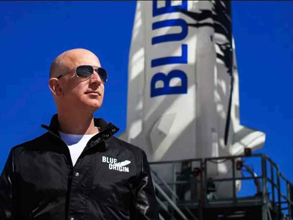Jeff Bezos é fundador da Blue Origin, uma empresa espacial que concorre com a SpaceX e a Virgin Galactic.(crédito: BlueOrigin/Divulgação )[/caption]