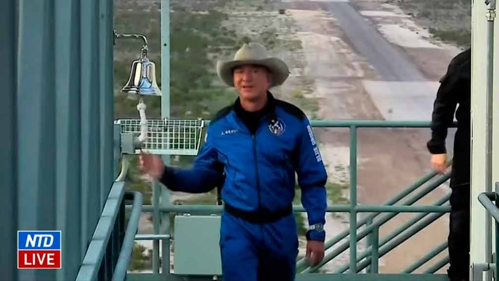 O Toque do sino por Bezos...estamos indo. Momentos anterior a partida. (crédito: BlueOrigin/Divulgação )[/caption]