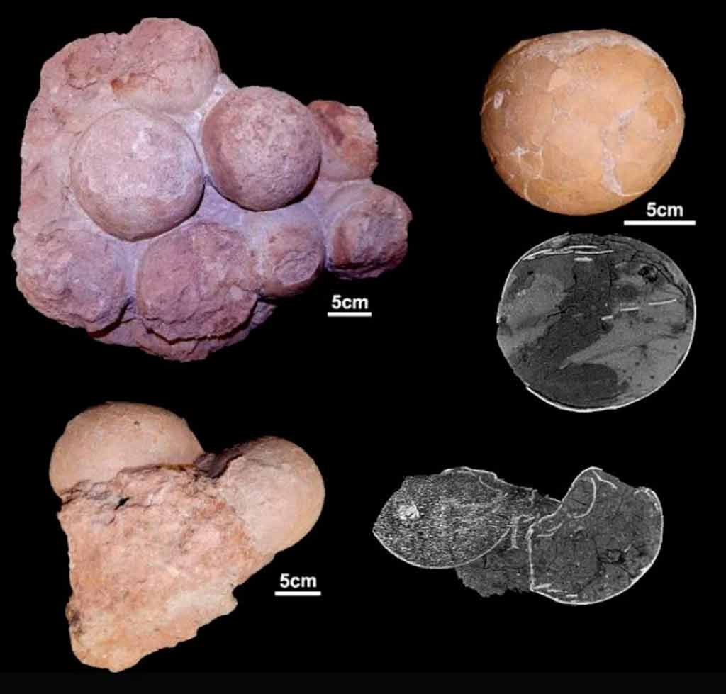 encontrados foram submetidos a exames de tomografia computadorizada, mas não foram achados vestígios de embriões dentro deles. Segundo o estudo, os ovos estavam juntos, no que parece ter sido a ninhada original.