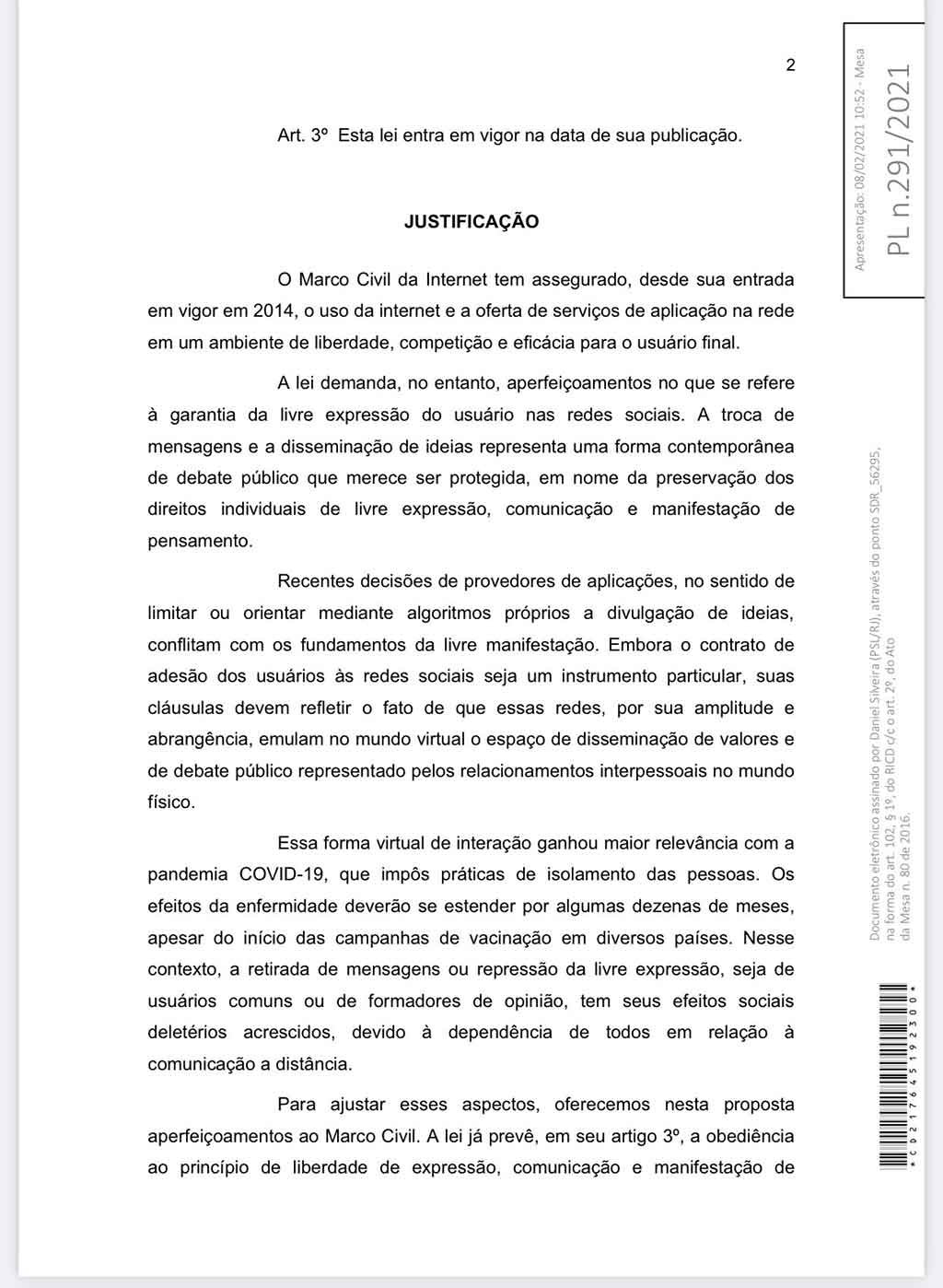 Projeto de Lei 291/2021 que estimula uma multa as empresas de Big Techs das redes sociais e suspende o direito de operação no Brasil por 90 dias. 3[/caption]