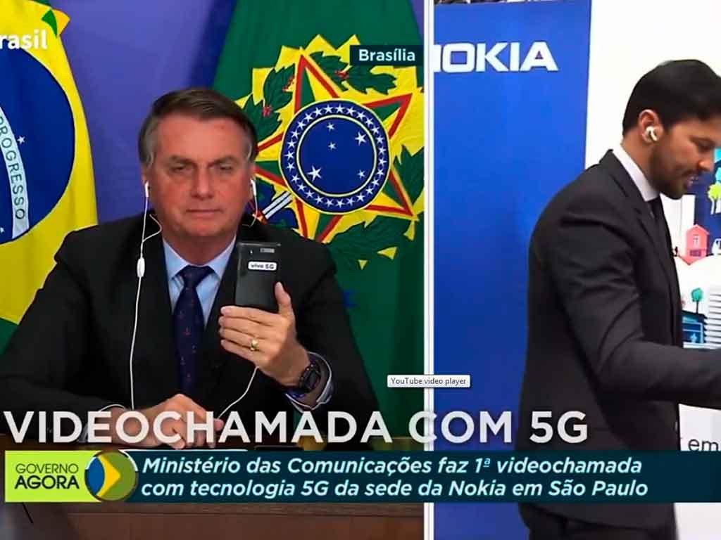 O presidente Jair Bolsonaro recebeu a primeira ligação via 5G do país, realizada pelo ministro das Comunicações, Fábio Faria