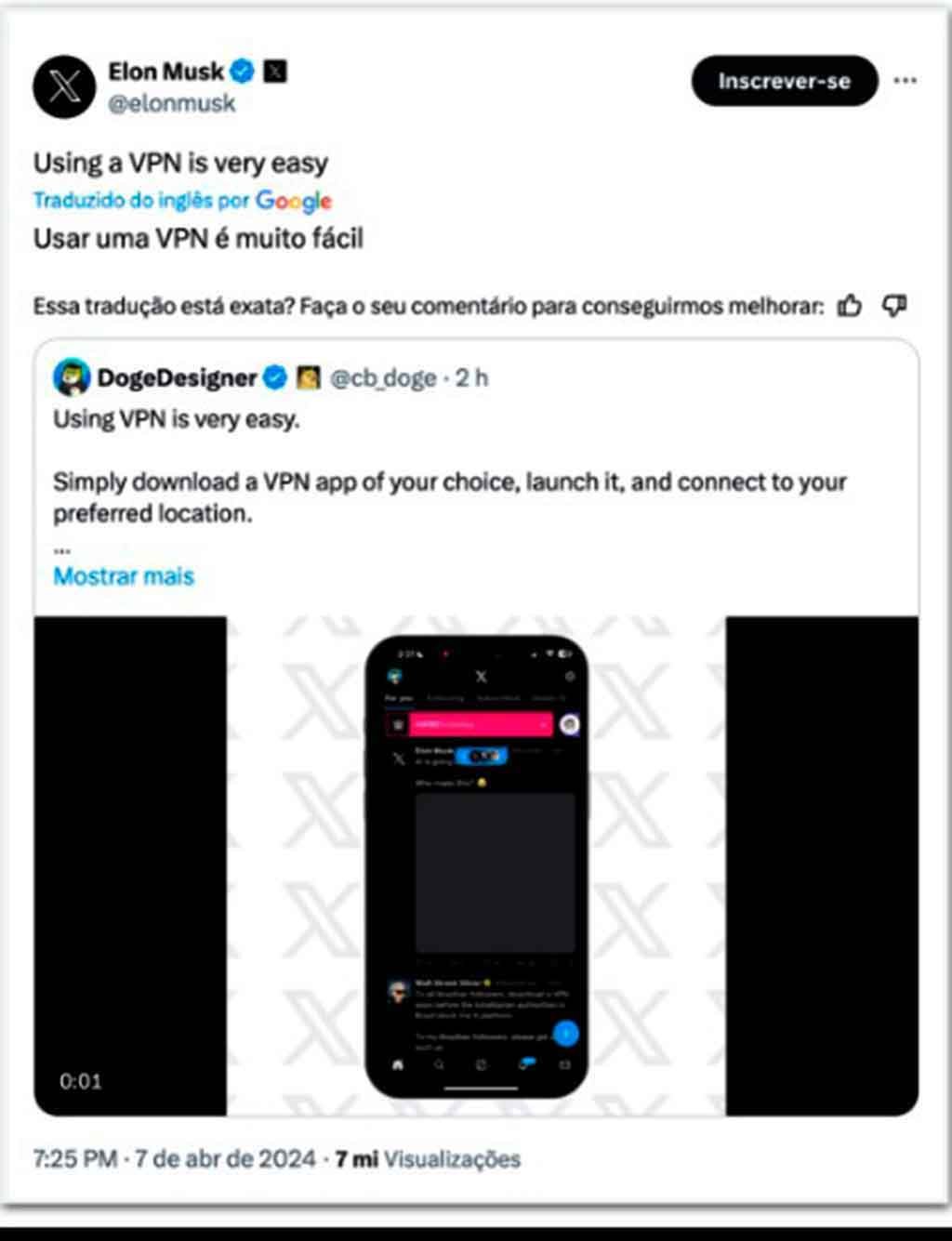 o dono do X respondeu a um tutorial que ensina usuários a baixarem um aplicativo de VPN e disse que