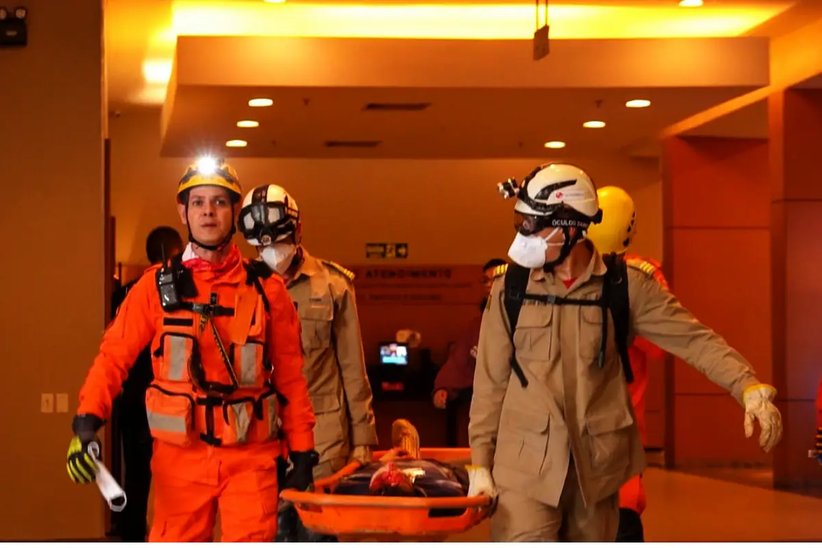 Durante a simulação, o Corpo de Bombeiros conduziu o resgate das vítimas e realizou o atendimento inicial no local, enquanto os feridos foram encaminhados para unidades de referência (Einstein Goiânia, HUGO e HMAP).