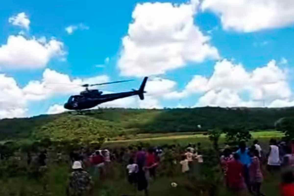 Empresário usa helicóptero para jogar carnes sobre cidade em Goiás. Veja vídeo