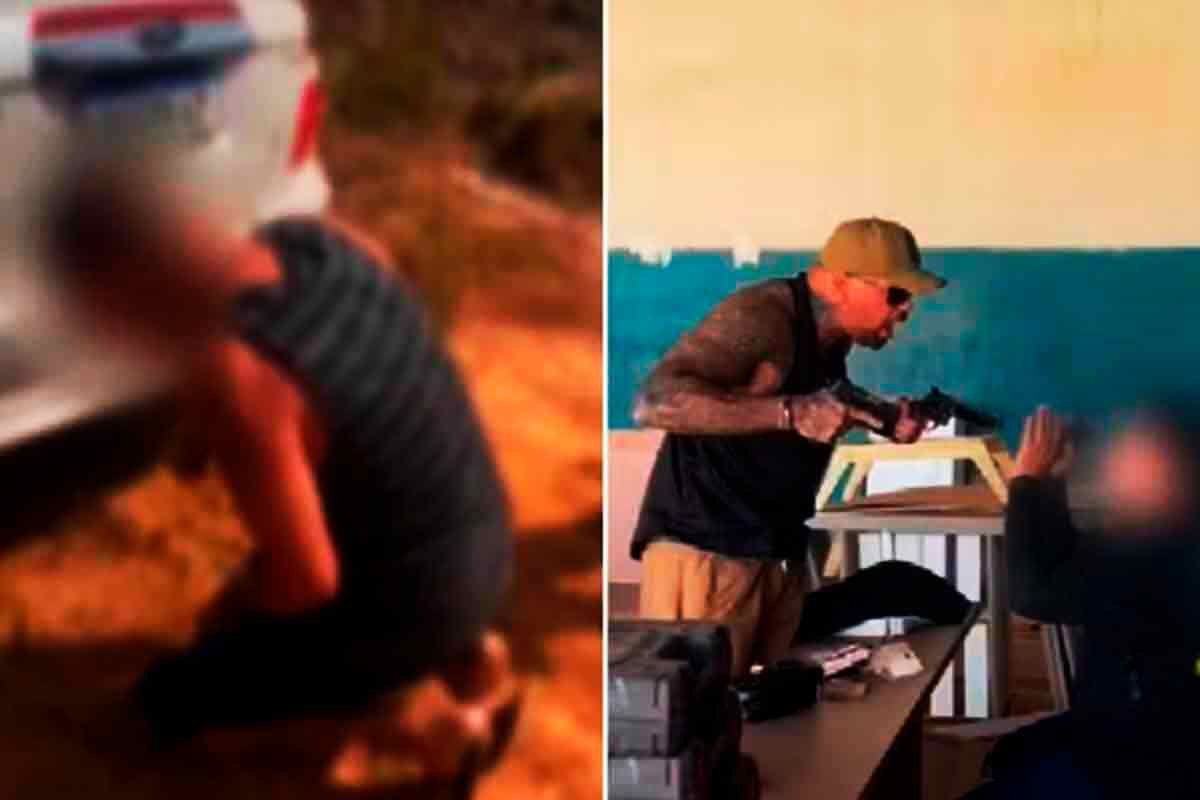 Em outro vídeo, o sargento ameaça um homem com duas armas de fogo, enquanto a vítima chora e pede desculpas.