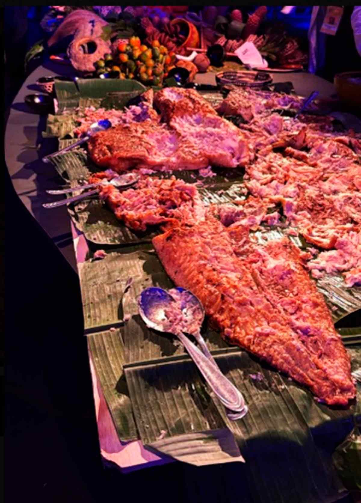 Na grande mesa, sob iluminação suave e reflexos que realçavam os variados pratos, havia três tipos de peixes típicos da Amazônia – o mais consumido foi o filhote.