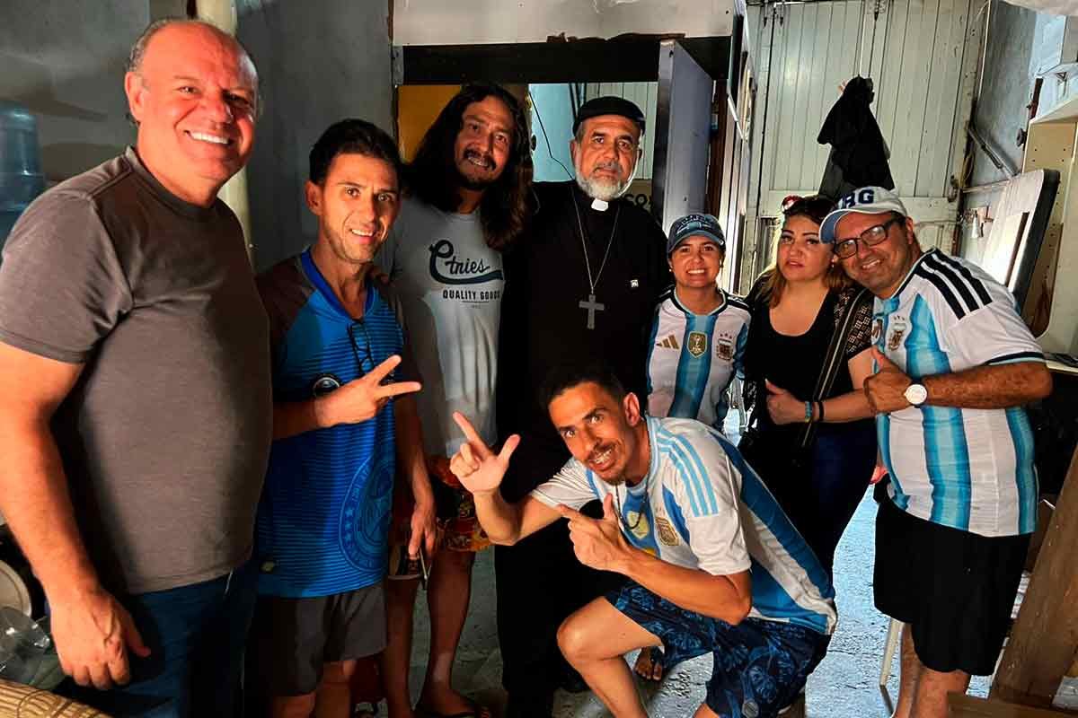 Durante a visita, o padre fez questão de compreender a fundo a realidade vivida por esses brasileiros, escutando atentamente relatos sobre trabalho, moradia, documentação e desafios sociais enfrentados diariamente na Argentina.