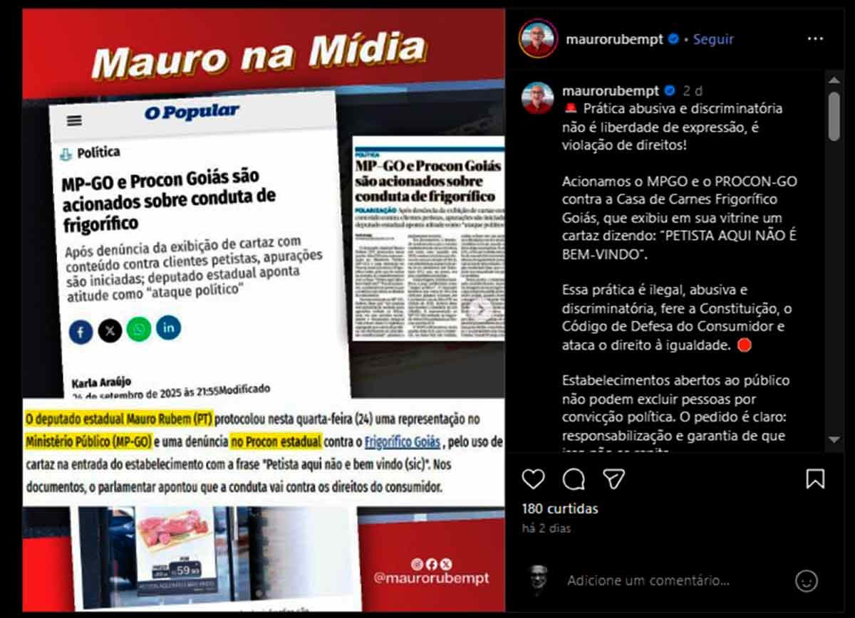 O caso levou o deputado estadual Mauro Rubem (PT) a denunciar a empresa ao Ministério Público e ao Procon de Goiás.