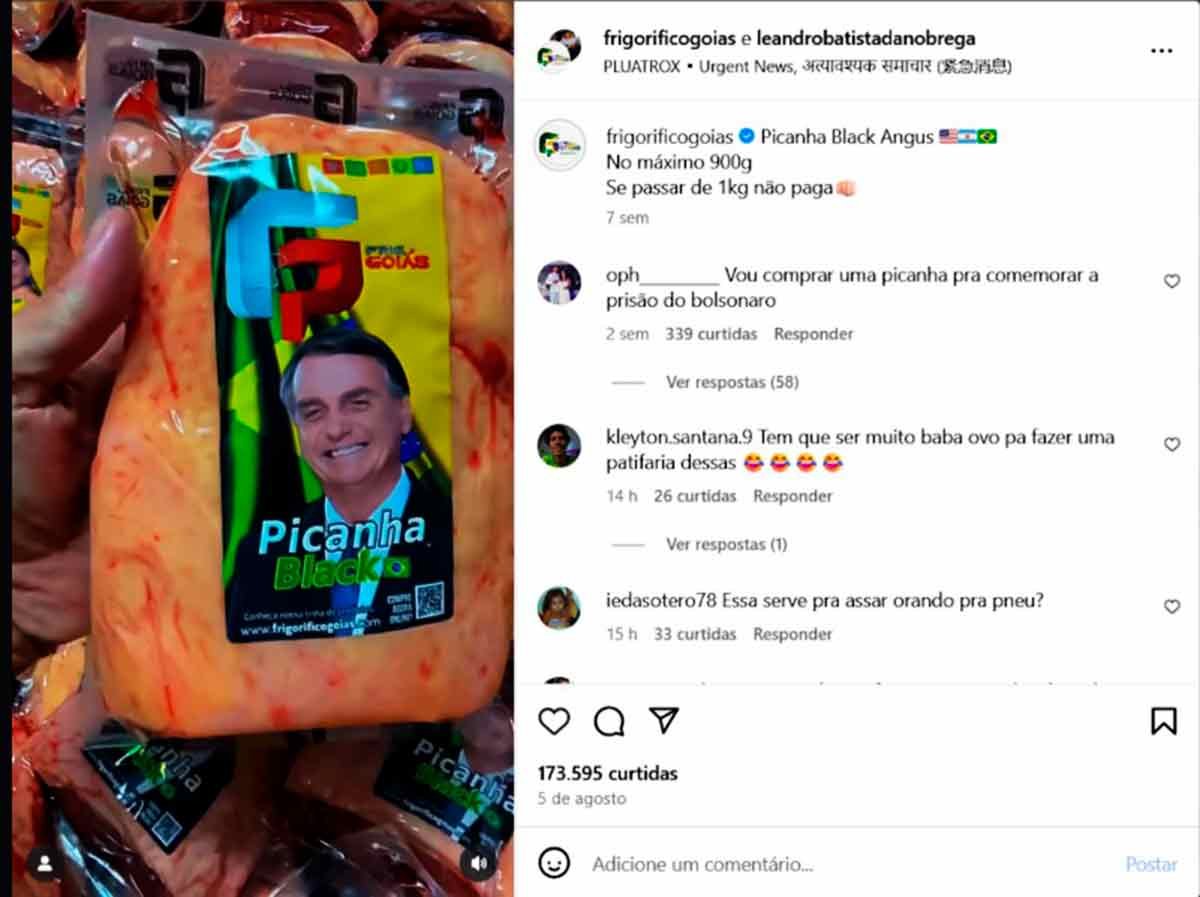 Frigorífico expõe publicamente apoio ao ex-presidente Jair Bolsonaro. Foto: @frigorificogoias via Instagram
