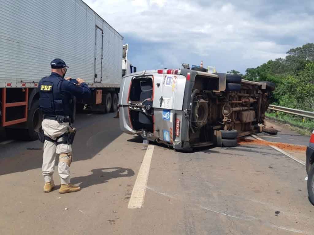 Van com pacientes que faziam tratamento de saúde em Anápolis tomba na BR-060 — Foto: PRF/Divulgação[/caption]
