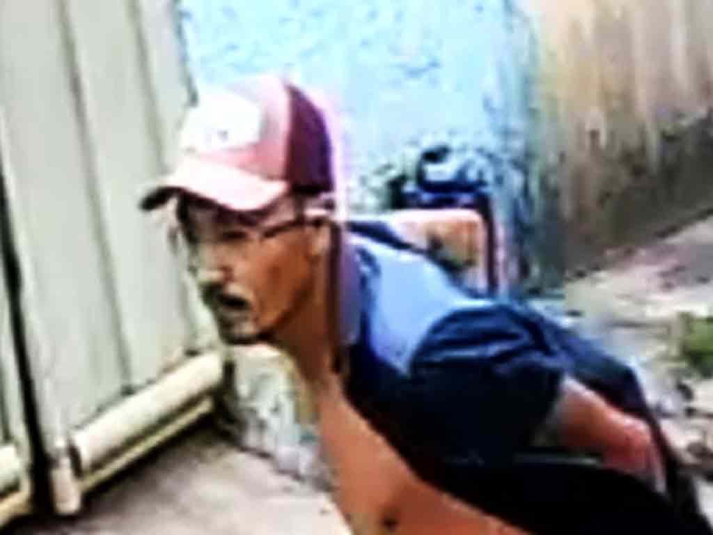 Com a presença do segundo homem, o suspeito fugiu e câmeras de segurança de residências próximas a passarela filmaram o rosto dele.