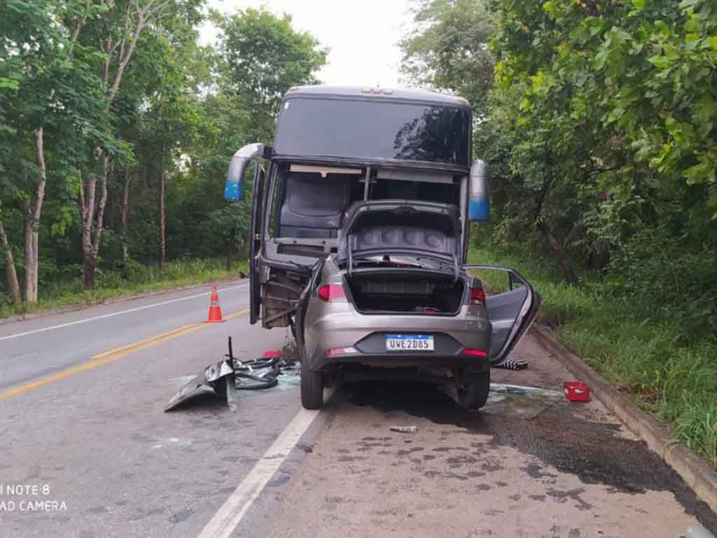 Colisão frontal entre coletivo e carro de passeio mata três pessoas na BR-153