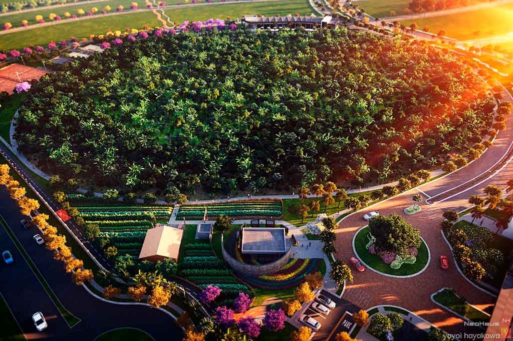 Mas uma experiência inovadora na cidade de Aparecida de Goiânia, região metropolitana de Goiânia, tem usado o sistema agroflorestal também para compor o projeto paisagístico de um grande condomínio residencial.