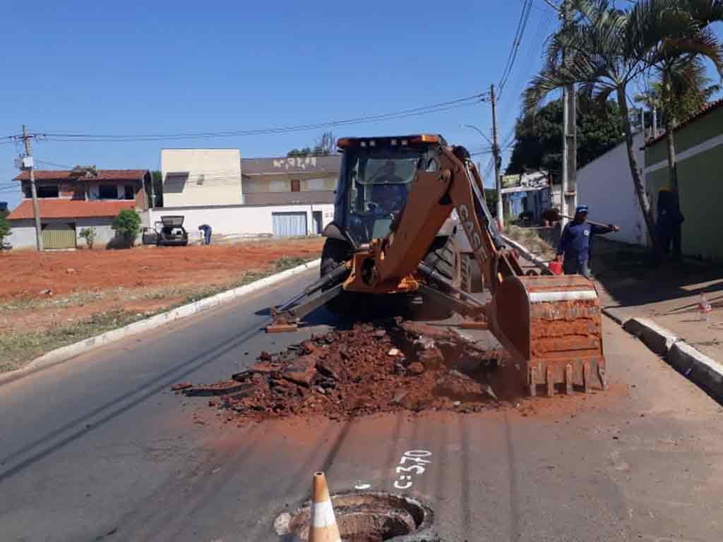 O trabalho de esgotamento sanitário está sendo realizado em várias regiões do município