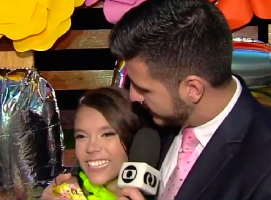 Yani Duarte Barbosa ao fazer 15 anos e ganhar surpresa do jornalista Matheus Ribeiro em Senador Canedo Goiás — Foto: Reprodução/TV Anhanguera[/caption]